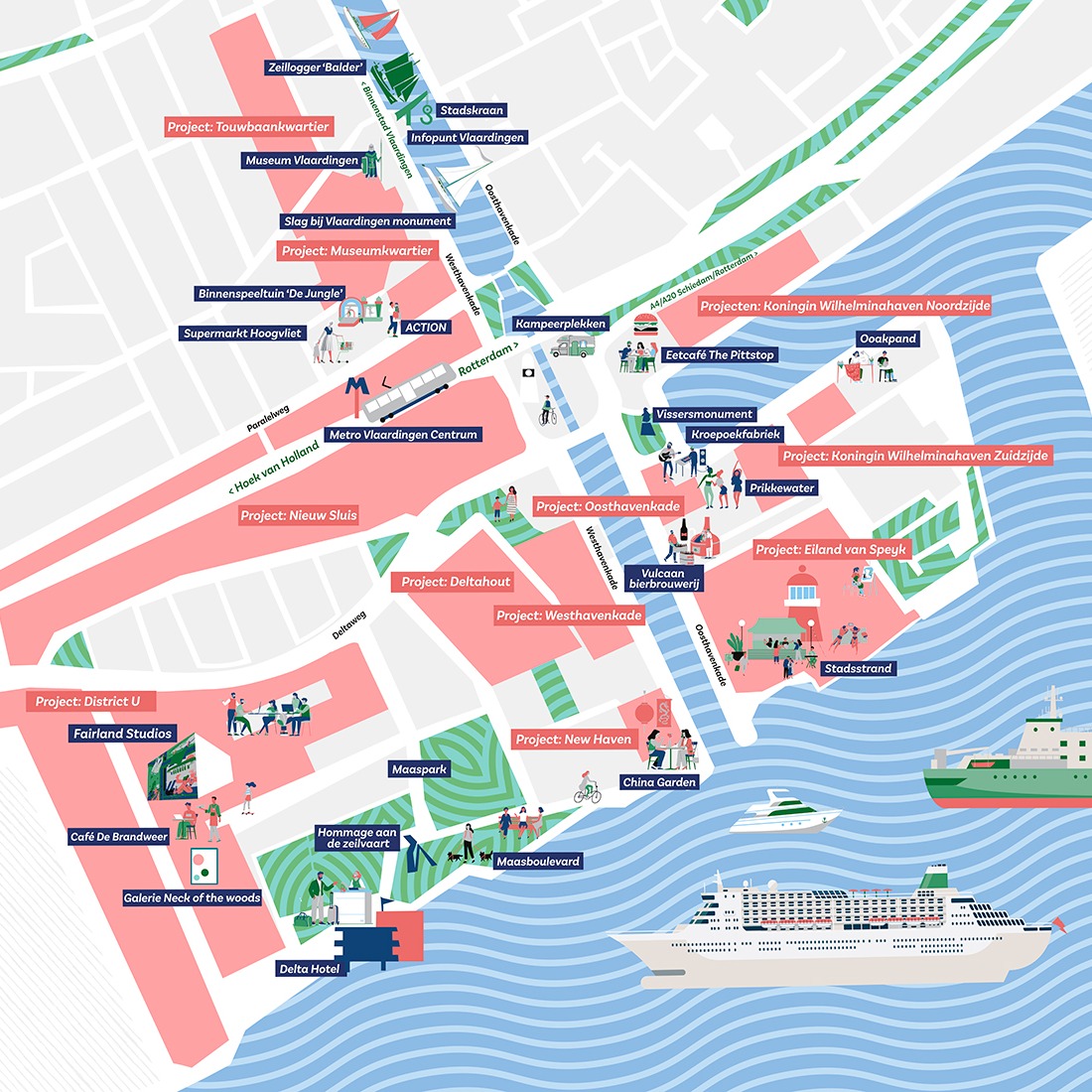 Het adviseren en begeleiden als projectnotaris van Rivierzone Vlaardingen. Vlaardingen krijgt er circa 500 woningen bij. In september 2017 is de eerste paal geslagen van de in totaal 355 eengezinswoningen en 155 appartementen tussen het centrum en de rivier Nieuwe Maas. Tussen het centrum en de Galgkade (deelplan Nieuw Sluis) zijn zo’n 245 eengezinswoningen gepland. Behalve eengezinswoningen komen er ook zo’n 25 appartementen in het prijssegment vanaf circa € 250.000 v.o.n. in het deelplan Stationsgebied. Doelstelling is om daarna te starten met het Schiereiland. Tussen de Waterleidingstraat, de Oosthavenkade en de rivier zijn circa 255 woningen gepland. Aan de rivier moeten dan vier woongebouwen tot circa 10 hoog komen met ongeveer 145 appartementen in het middel en duurdere segment. Op het schiereiland (Eiland van Speyk) is door OMA Amsterdam B.V. een wijk gepland met zo’n 110 eengezinswoningen.
